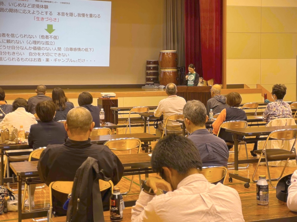 第一部、「依存症の理解と対応について~Sai-DATの取り組み~」と題しての講演。さいがた医療センター・副看護師長・村上裕子先生から講演をいただきました。